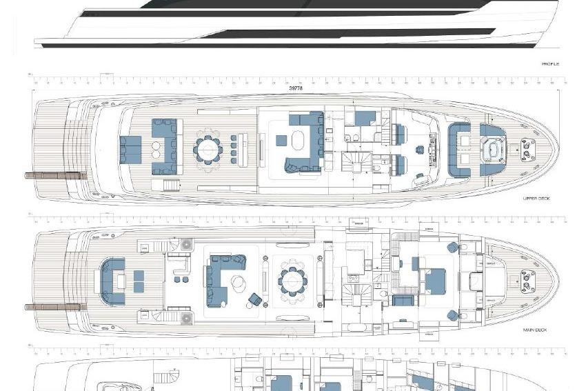 • Main deck with main saloon, bar, formal dining room, day WC and fully