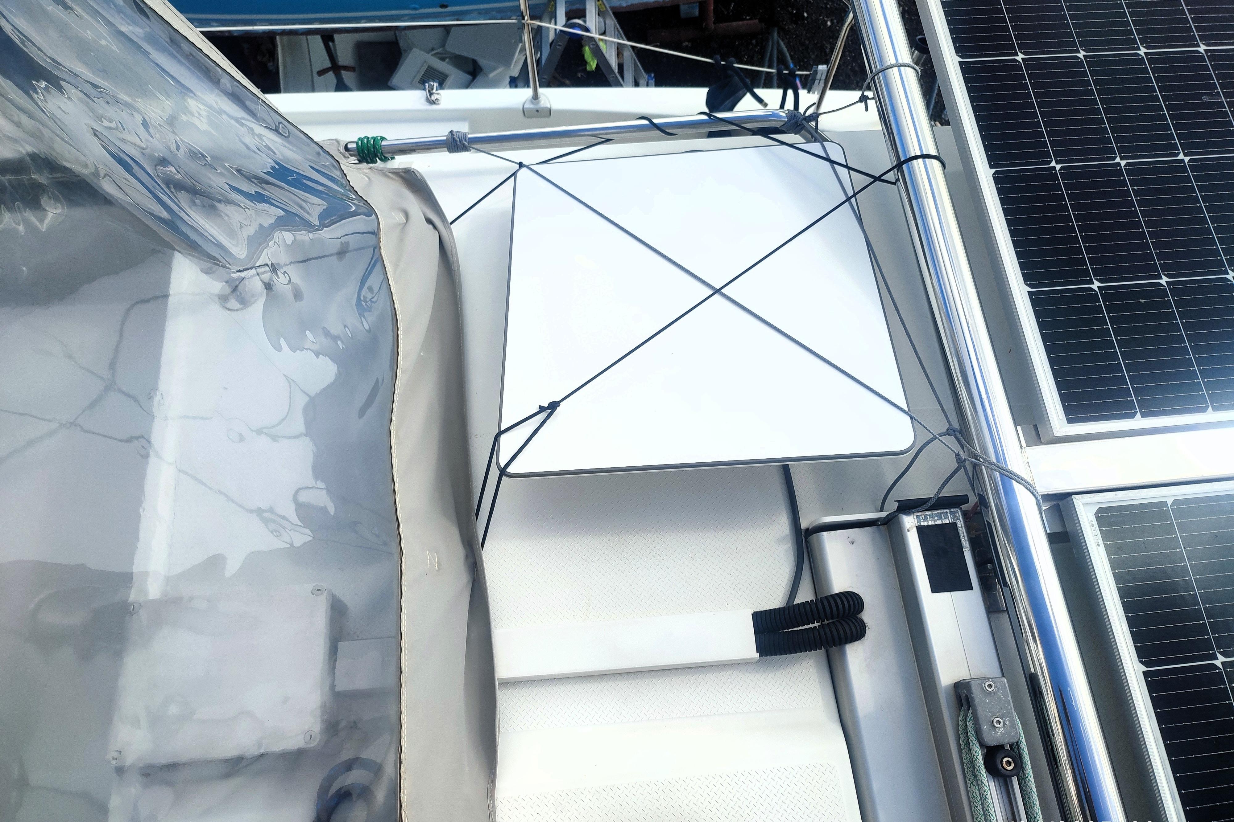 Equipped for a family of four to live on board permanently, Katla is the ultimate, safe, catamaran. She comes with this incredible carbon mast and boom, including a furling boom for total security while sailing. She is also equipped with all the electricity you need, with more than 3000 watts in solar panels. All induction kitchen, no gas on board.