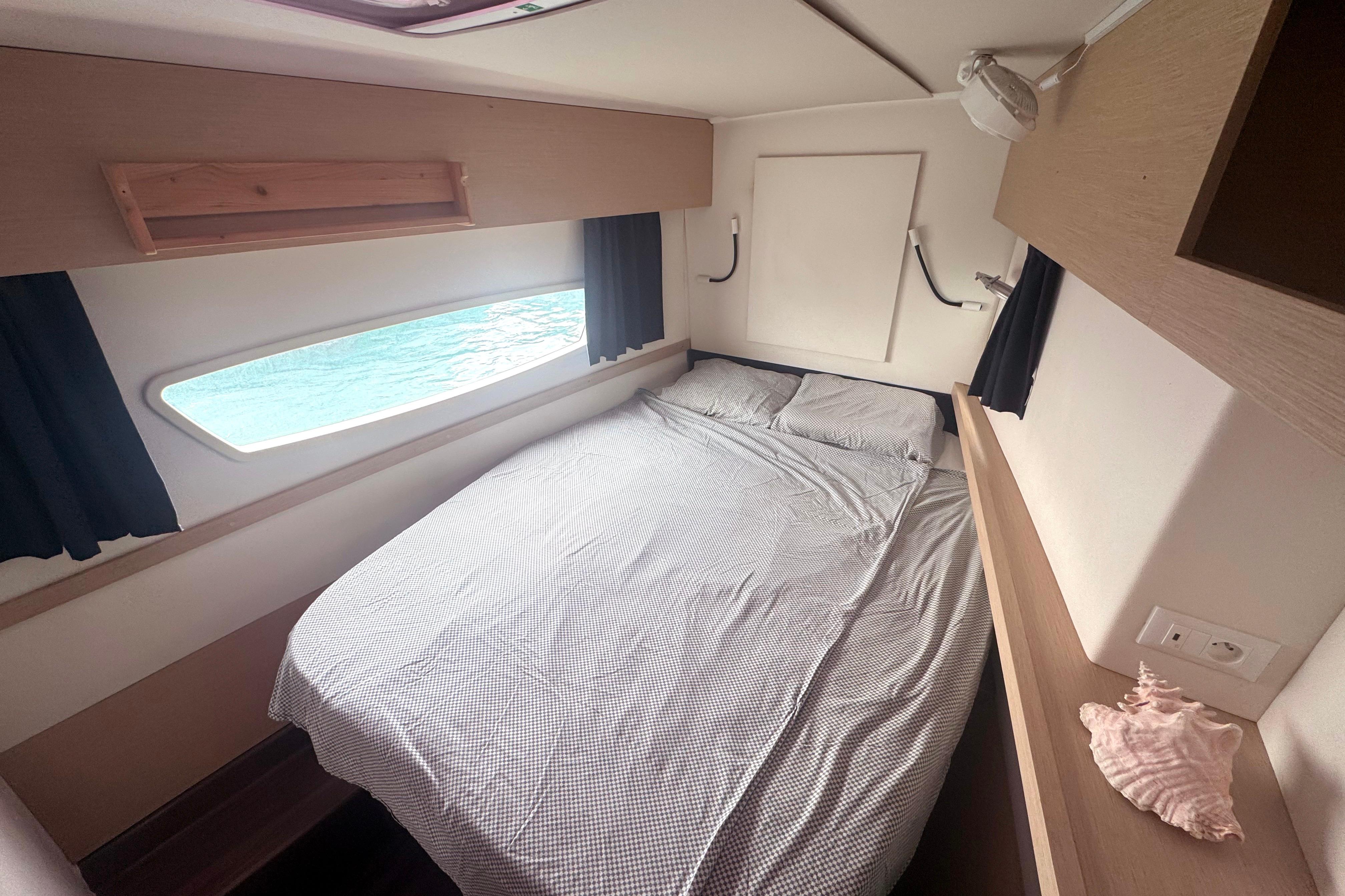 - Ventilation though1 deck hatch + via 1 porthole overlooking rear deck