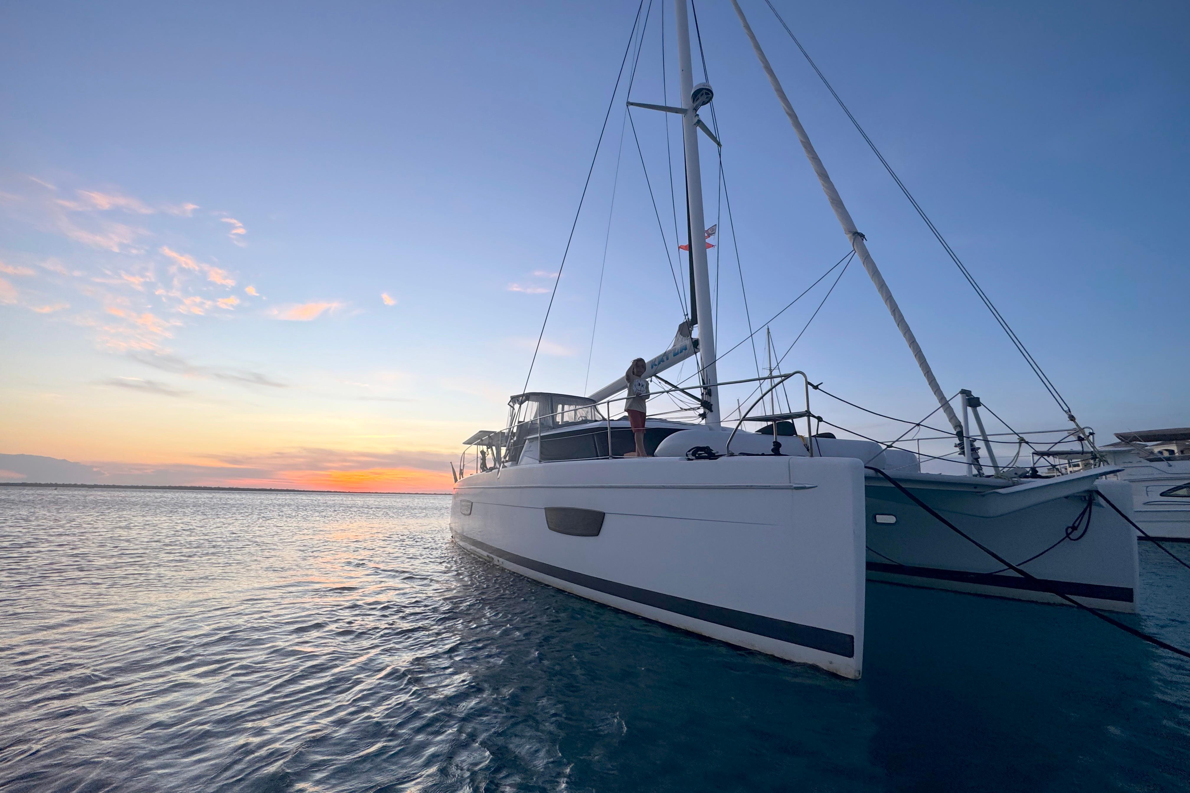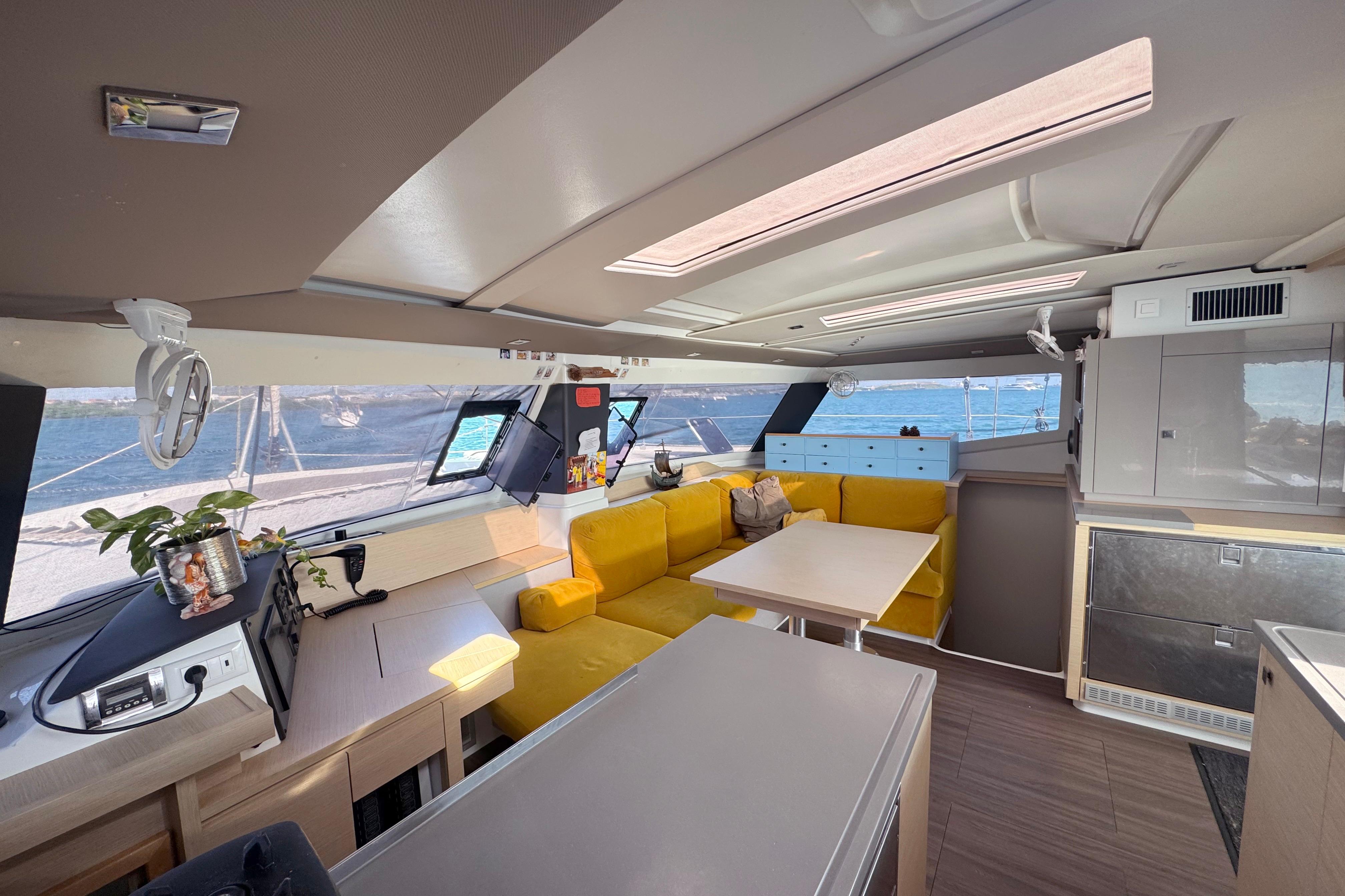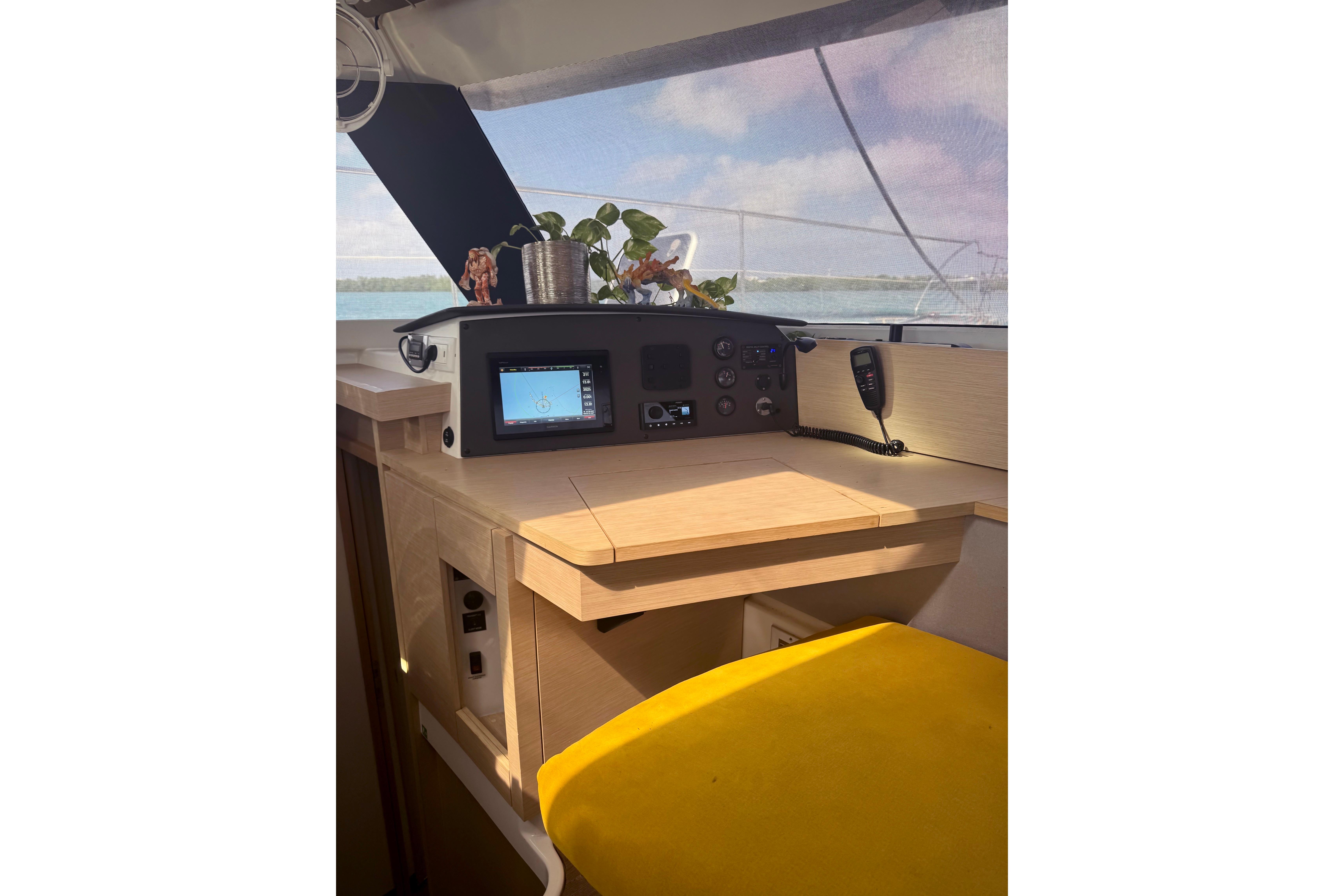 Immerse yourself in the panoramic 360° views made possible by the expansive saloon windows and integrated mast foot, marvel at the responsive handling in the spacious helmstation, or surrender your cares as you relax in the supremely cockpit or indulgent lounge deck. This cruising catamaran now has new features including an extra cockpit bench seat, and additional davits.