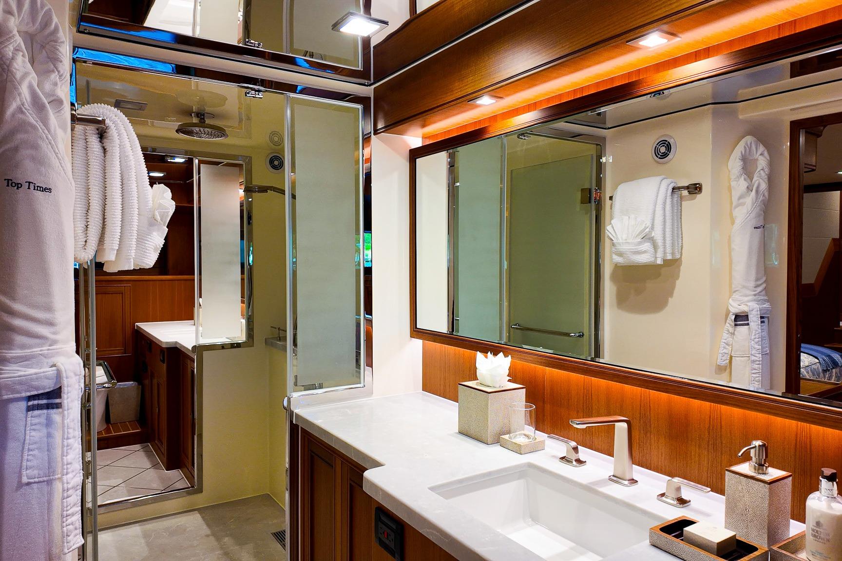- Master Stateroom: King bed athwartship, 2 heads with common shower