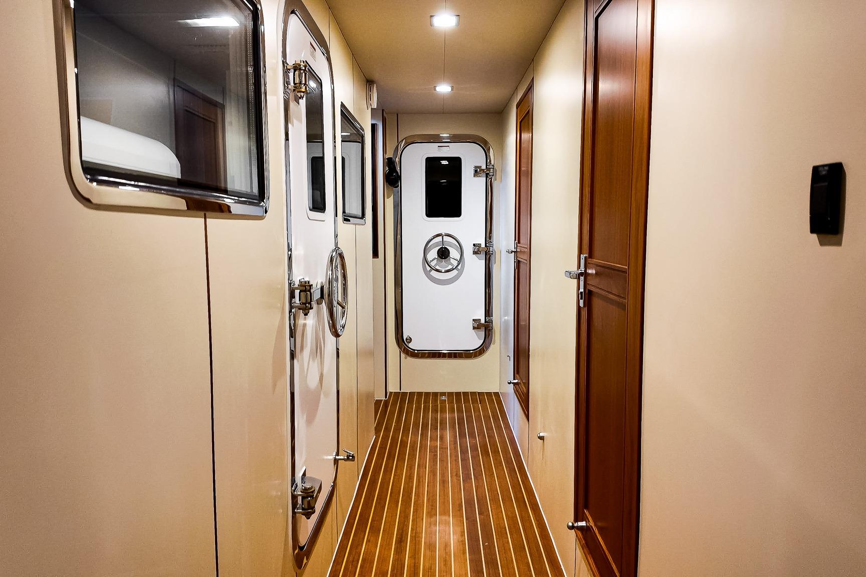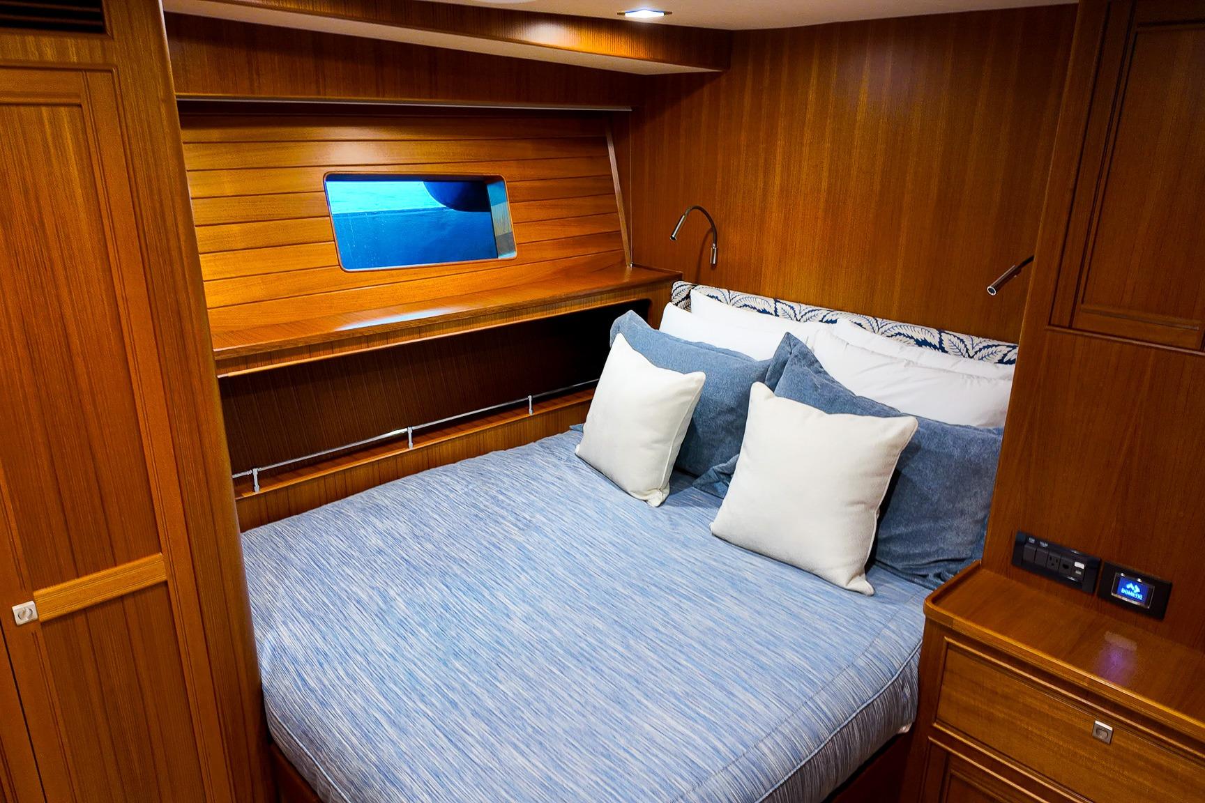 - Crew Cabin Aft (twin berths, head, shower, storage, 19" LED TV; entry under aft deck seat; includes engine room & crew cabin A/C)