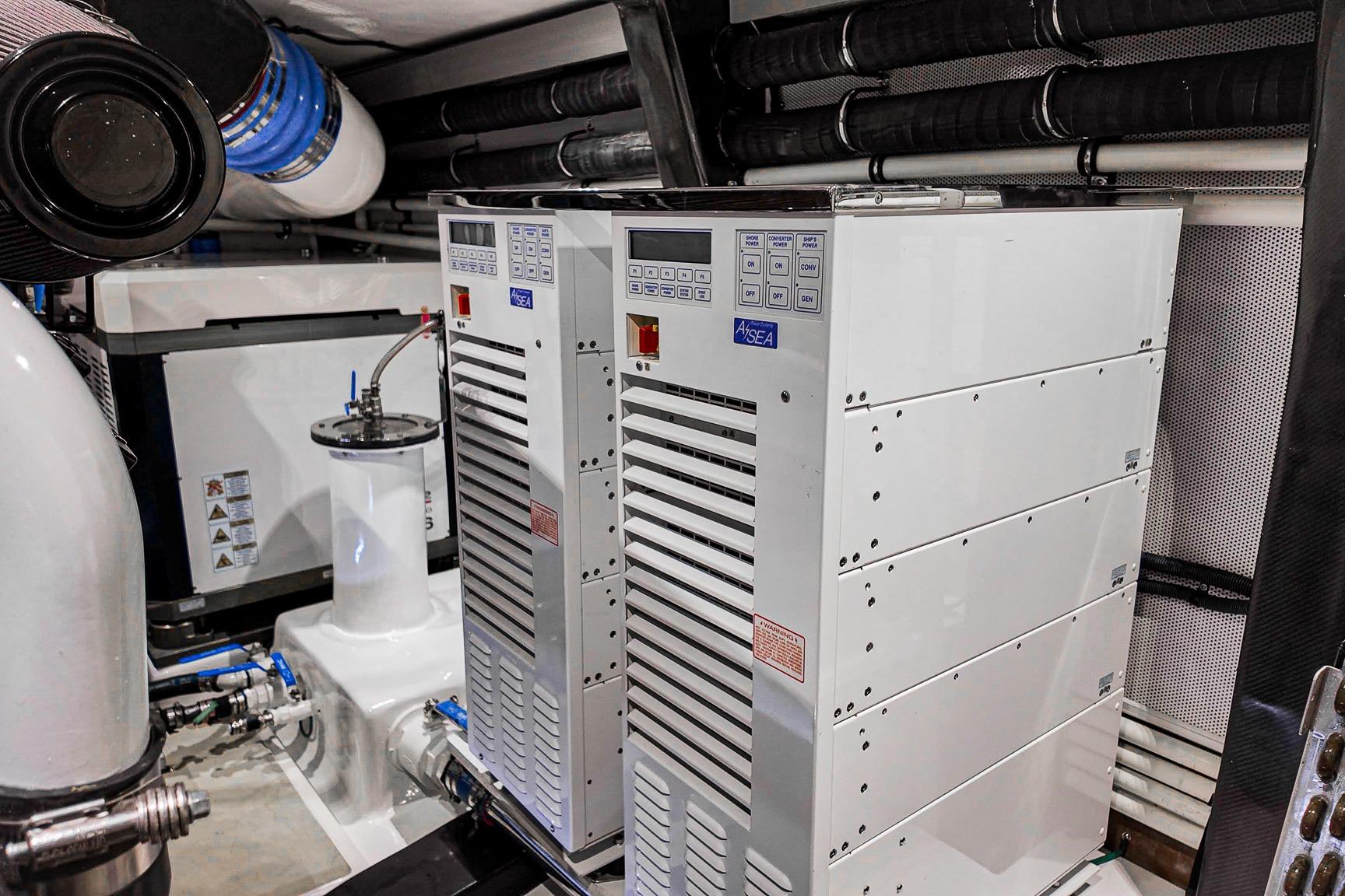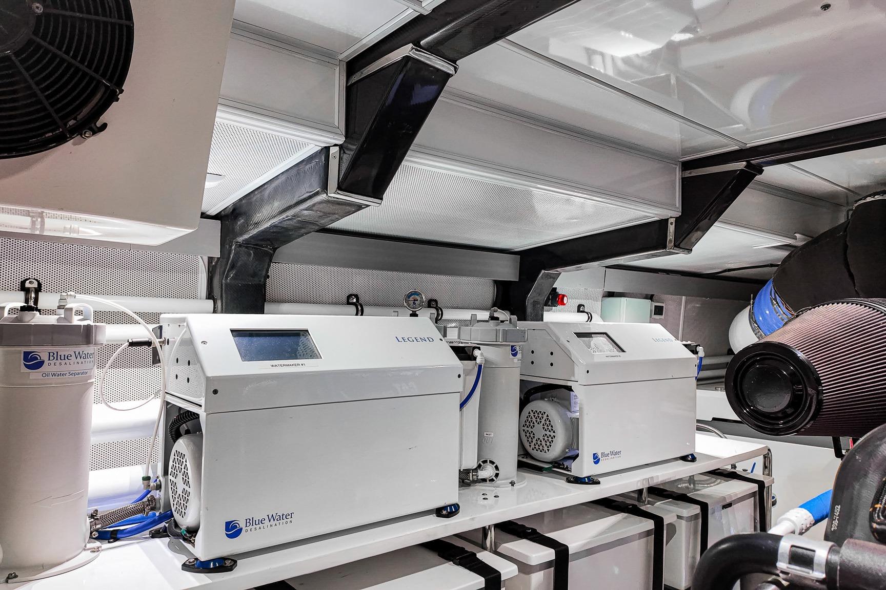 - 2x 950 GPD Bluewater Desalinator (remote control at lower helm & UV treatment)