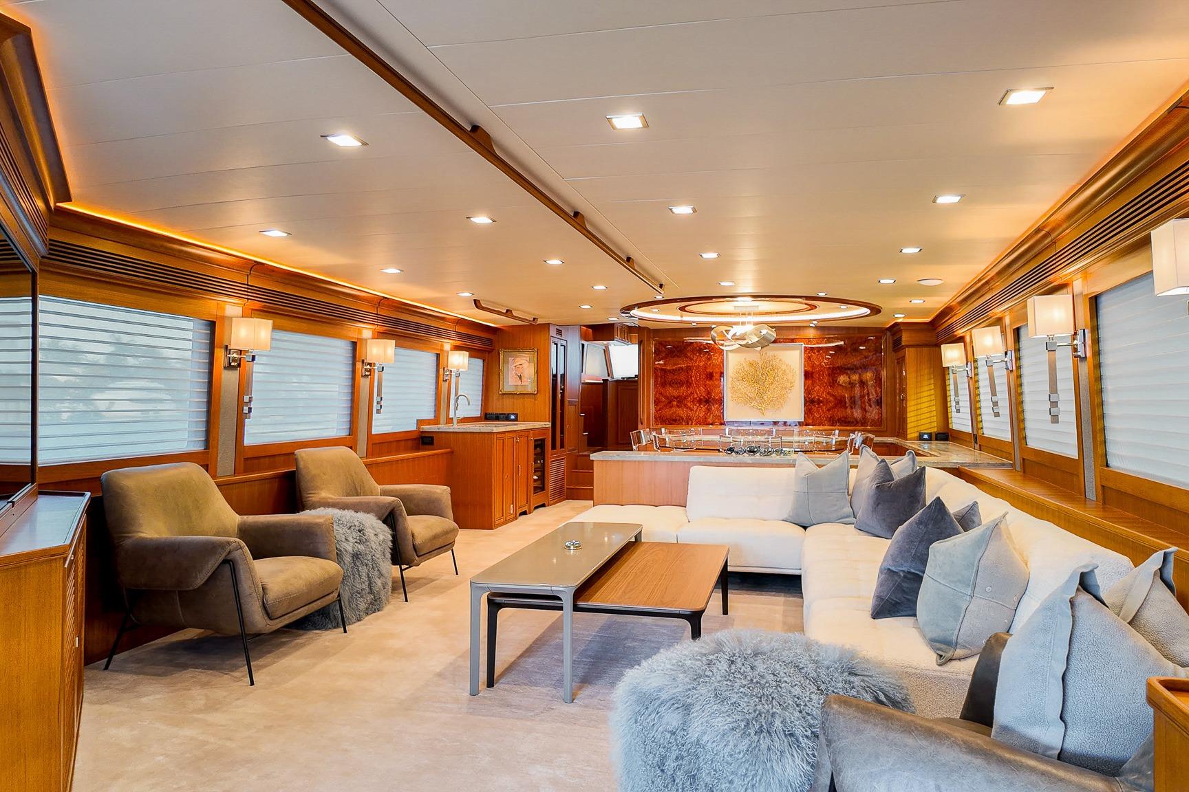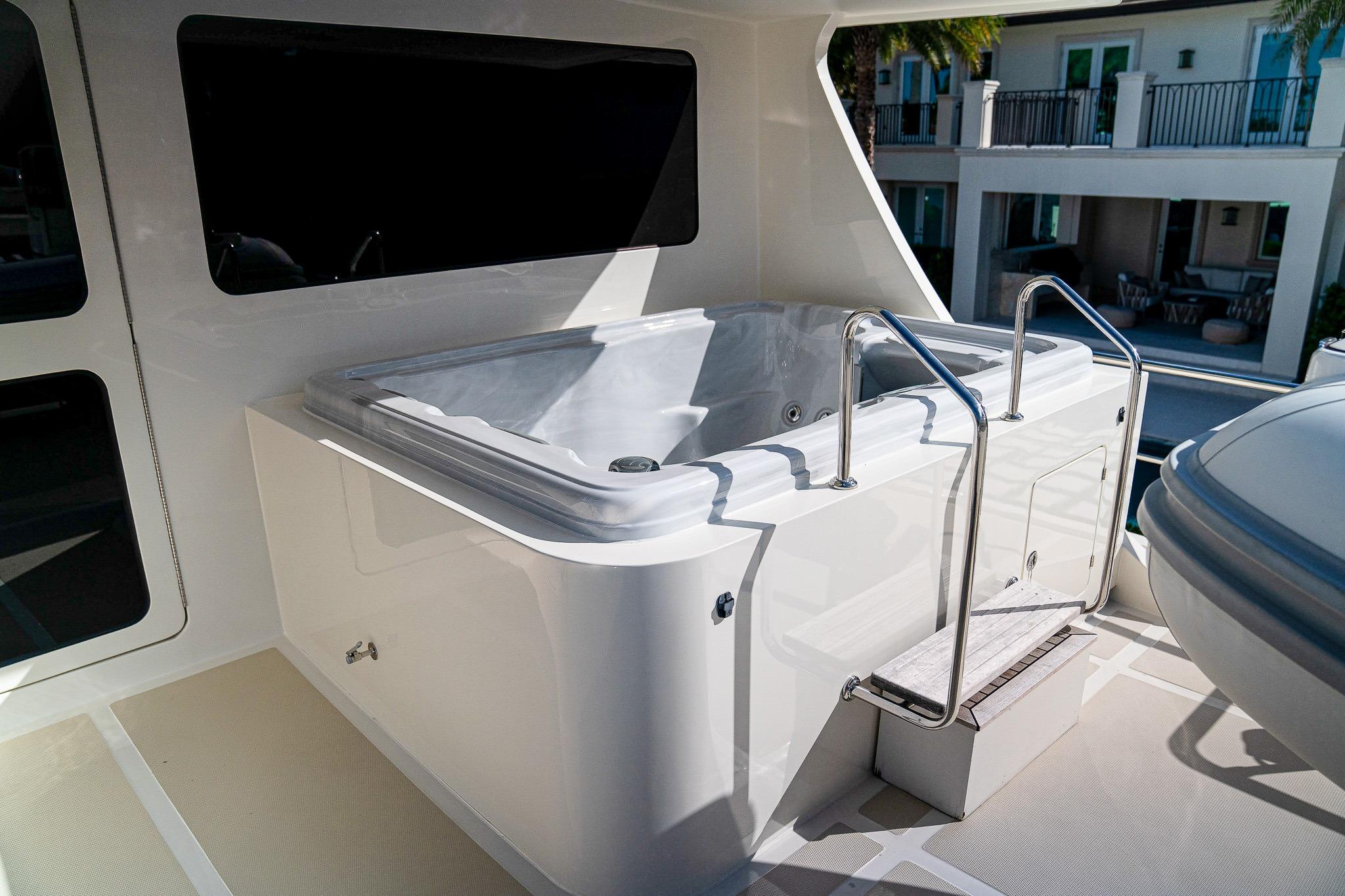 - Skybridge above command bridge (includes helm chairs, sunpad, etc.)