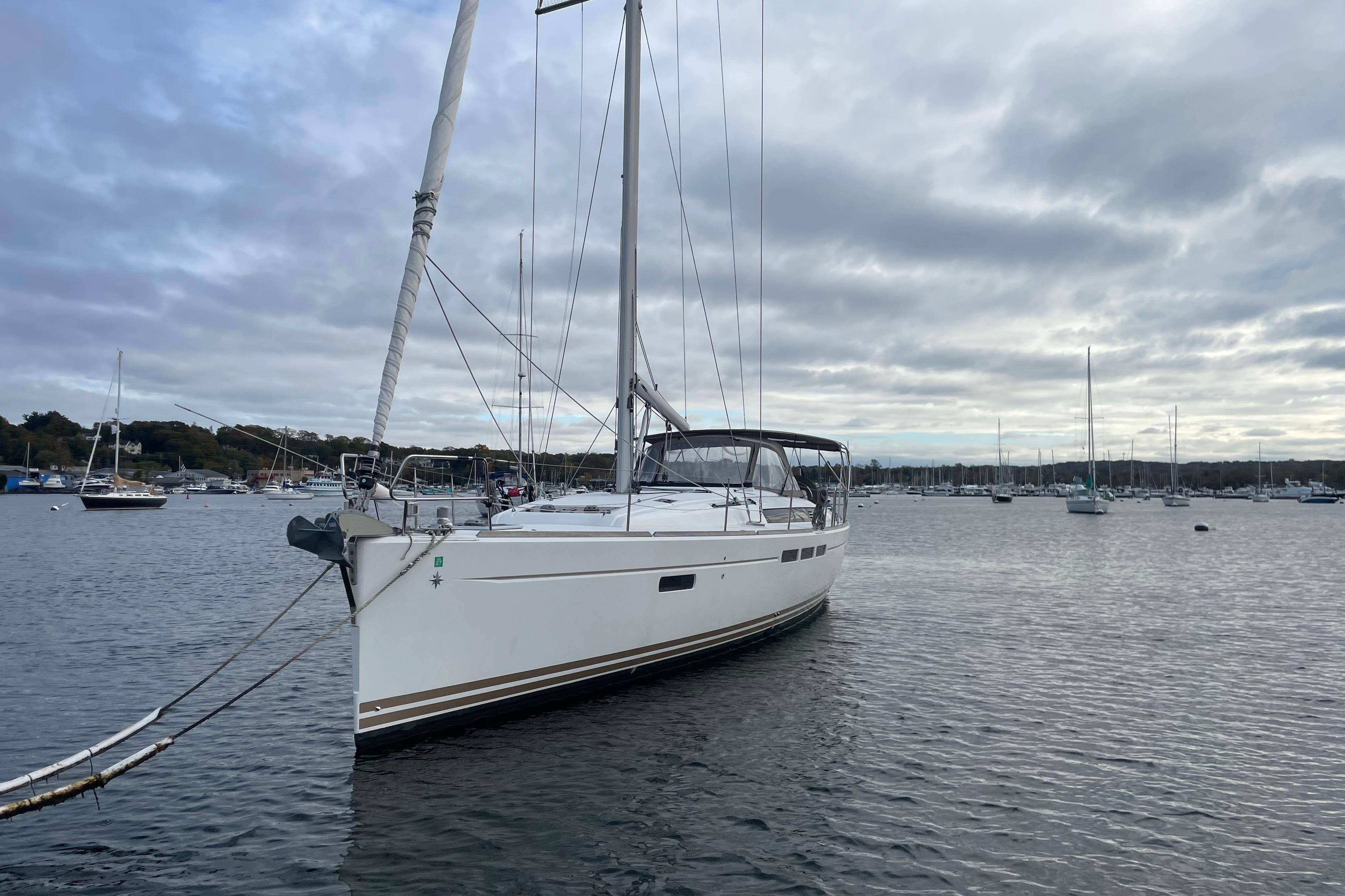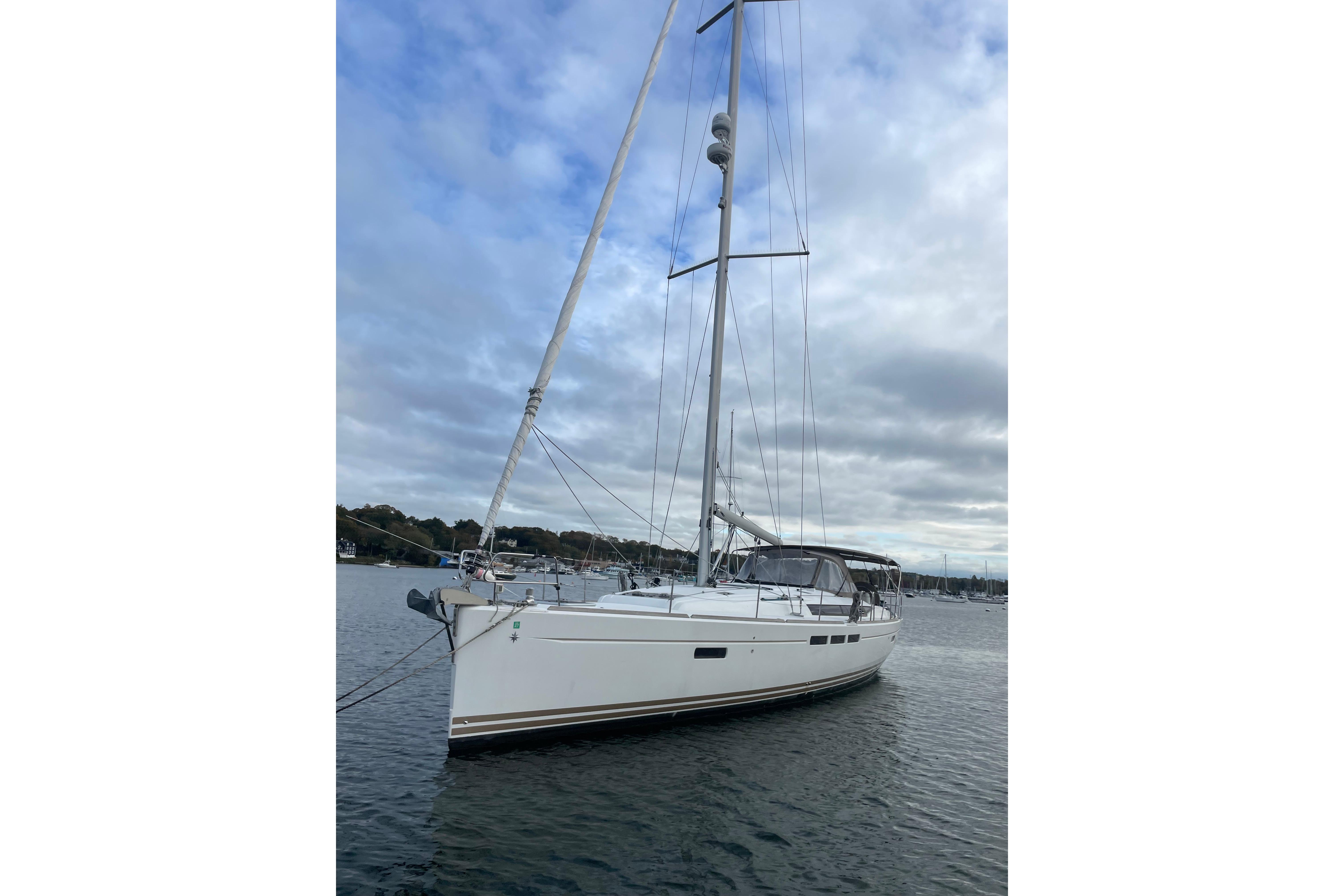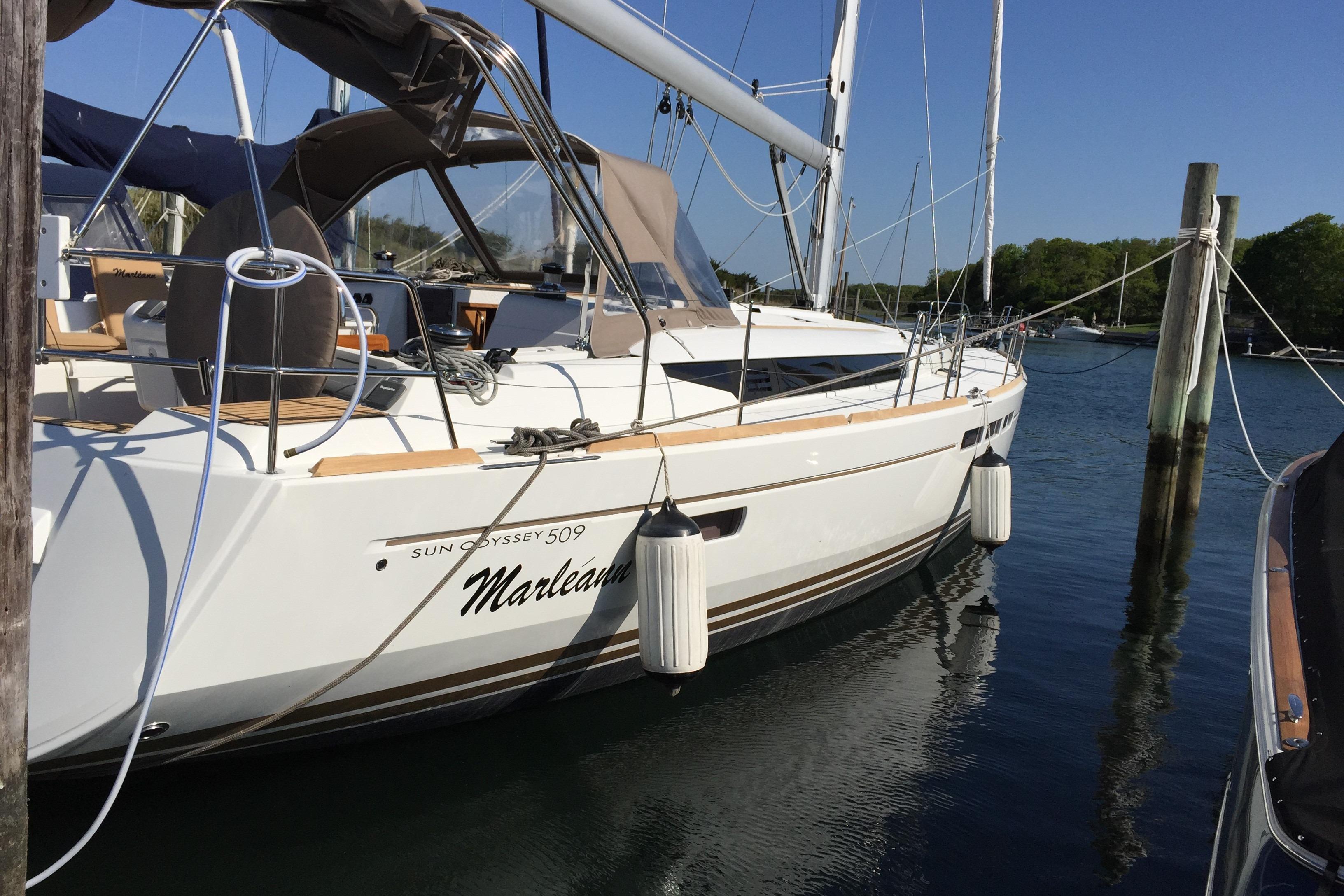 Well maintained 2012 Jeanneau 509 — Shoal draft, three cabin, two head layout with queen berths in each cabin, furling sails, bow thruster, full Raymarine electronics, A/C & heat, electric winches, deluxe galley, and spacious cockpit with dodger, bimini, and electric fold-down swim platform. Well-equipped and ready to cruise!