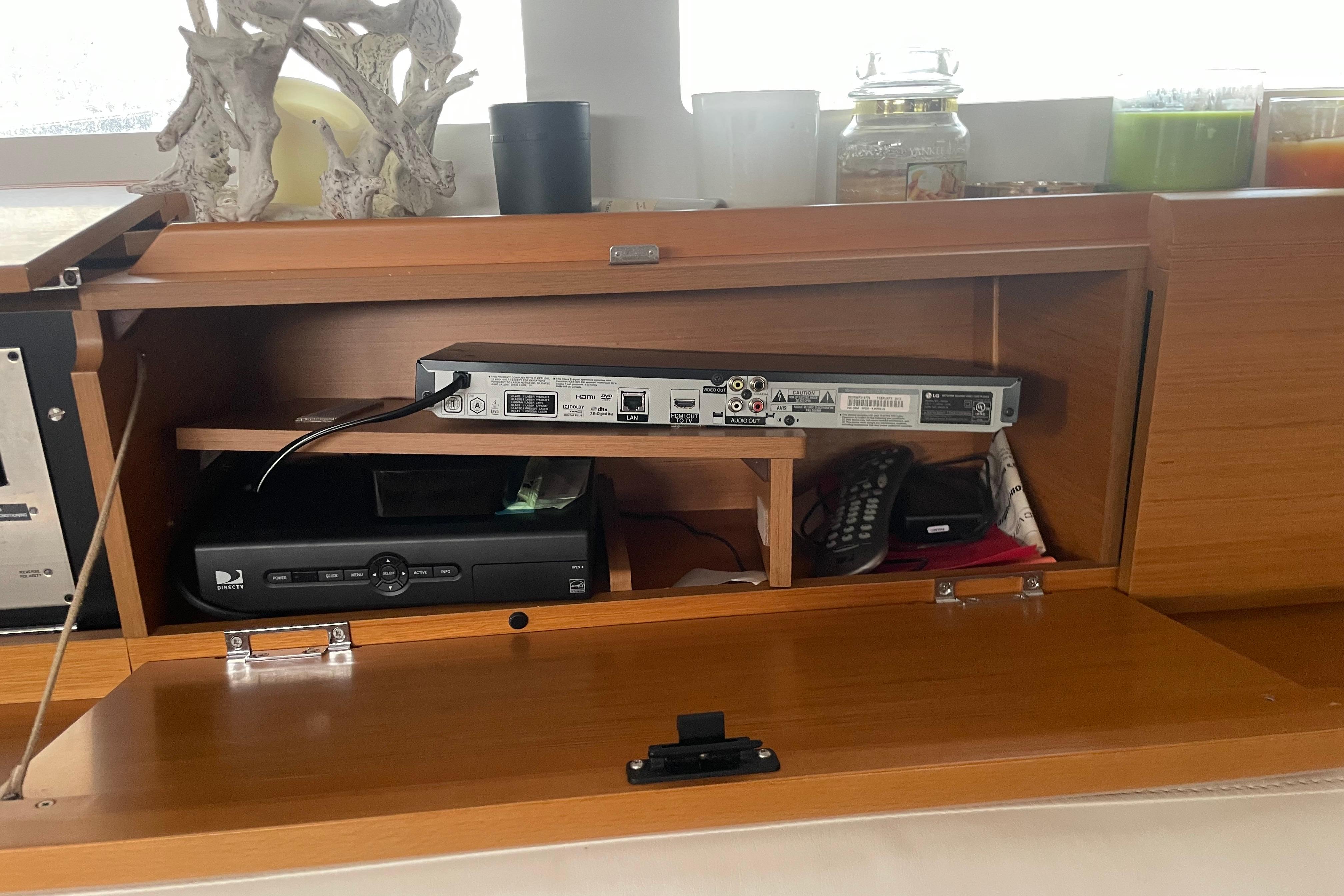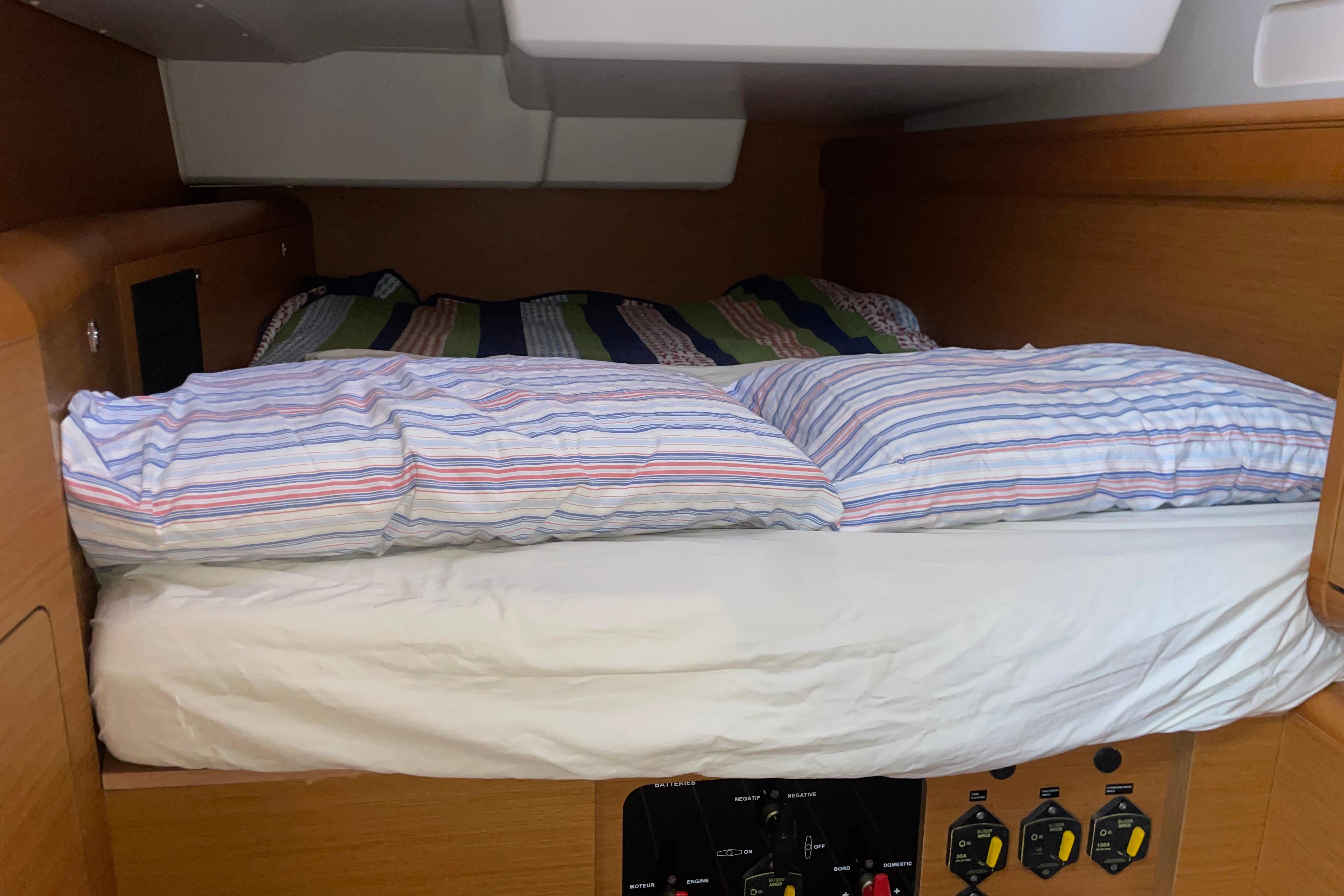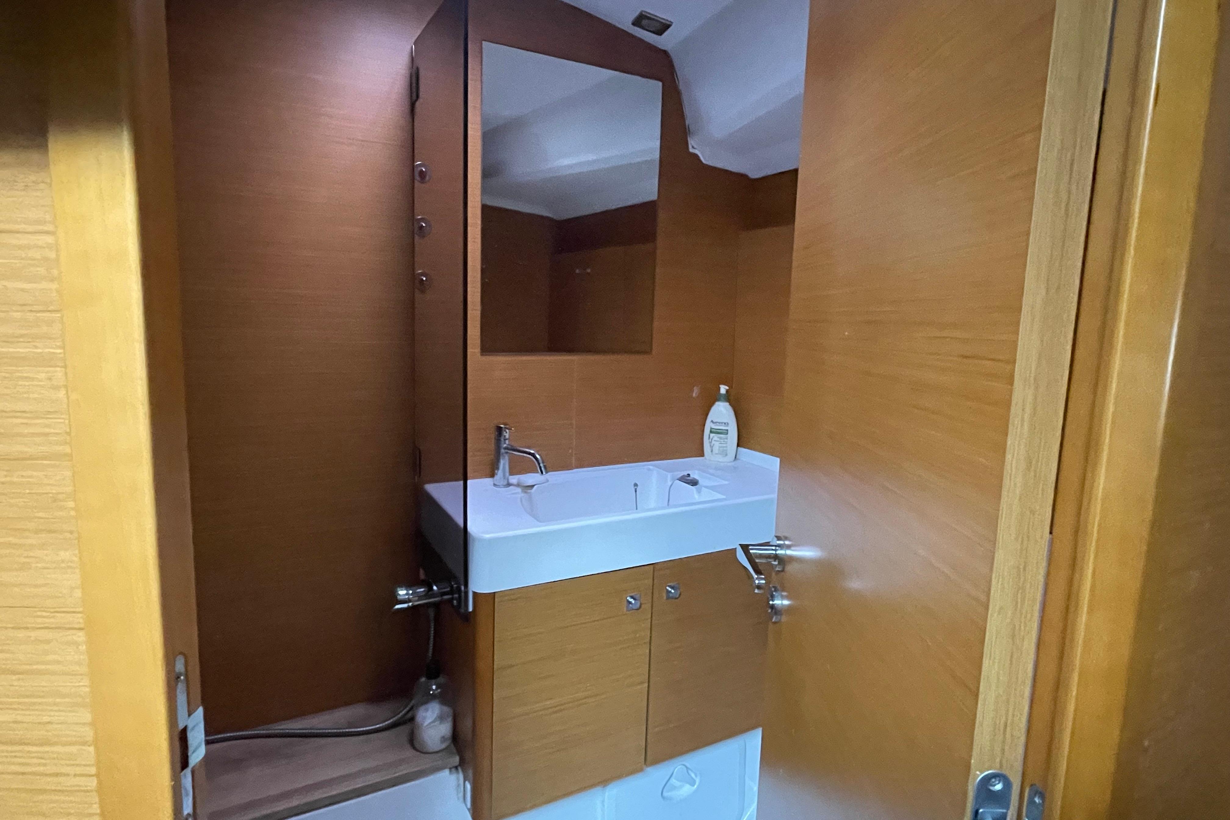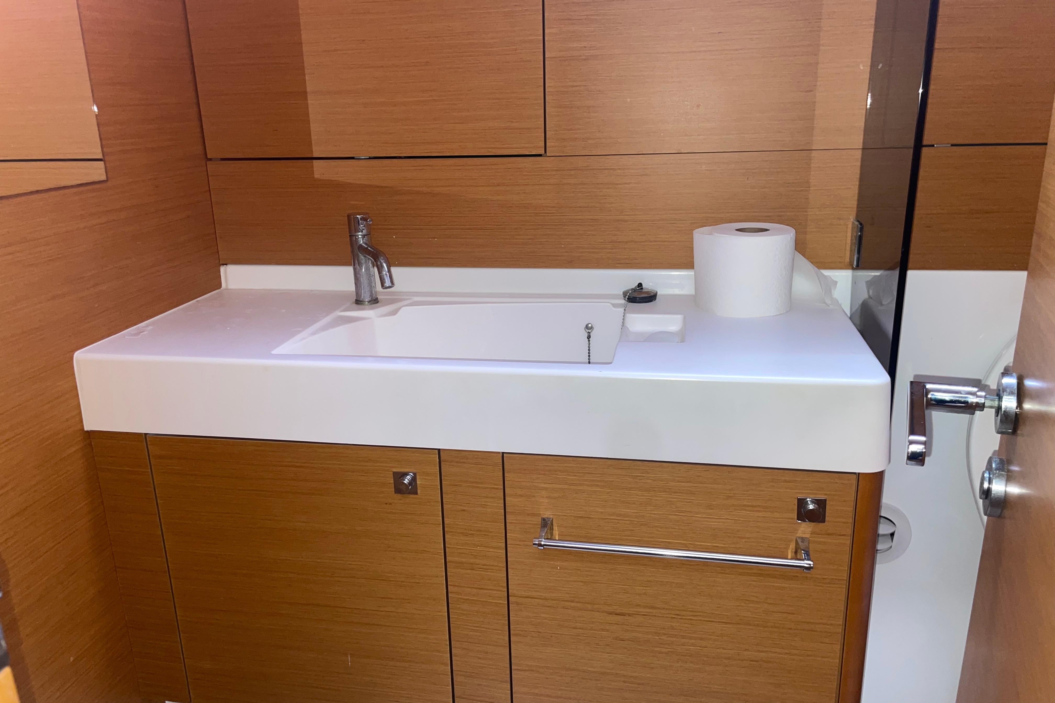 This stunning Jeanneau 509 features a luxurious three-cabin, two-head layout with an owner’s stateroom forward. Each cabin offers a queen berth and 6’6” headroom for exceptional comfort. The well-appointed galley includes a three-burner propane stove with oven, microwave, top and front-loading refrigerator, deep freezer, and an additional fridge. The main salon features a deluxe folding dining table, chart table, Bose speakers, and TV. Both heads are equipped with quiet flush electric toilets and separate showers.