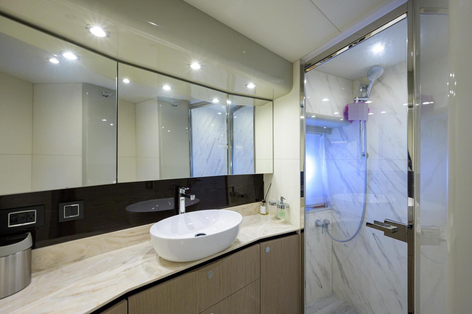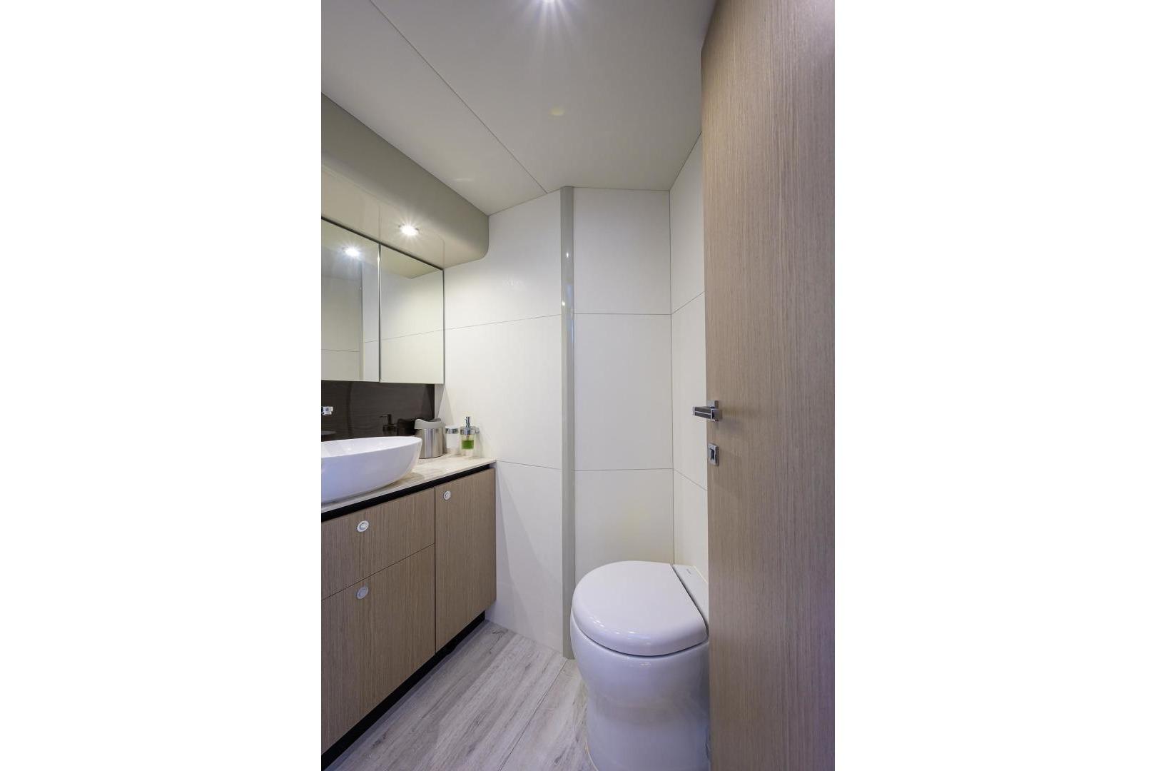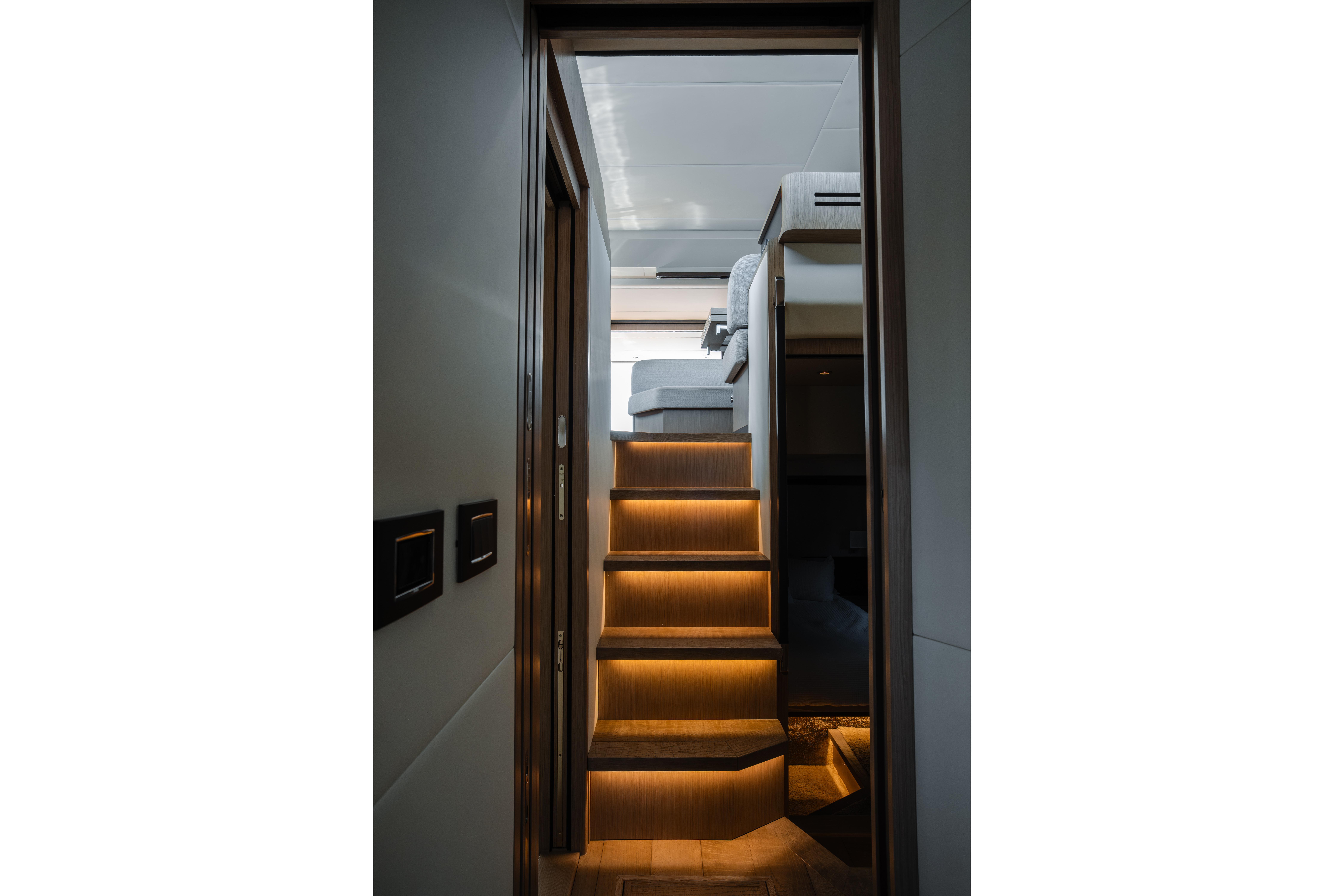 She boasts an atrium-style staircase, which makes this saloon and galley layout the best in class.