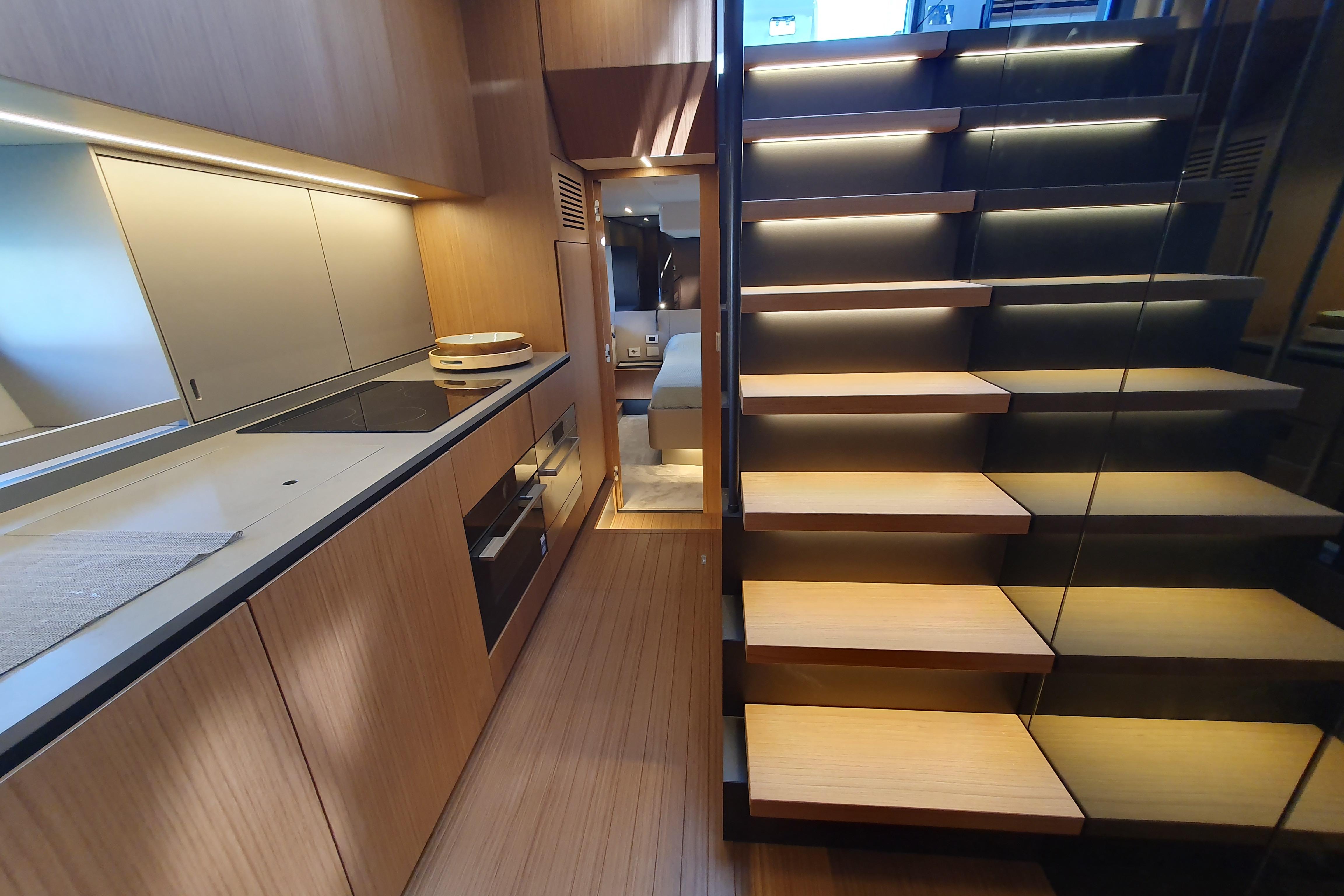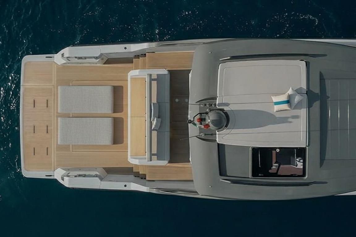 Equipped with IPS and DPS (virtual anchor) for effortless handling, plus a hydraulic swim platform, modular gangway and summer galley.