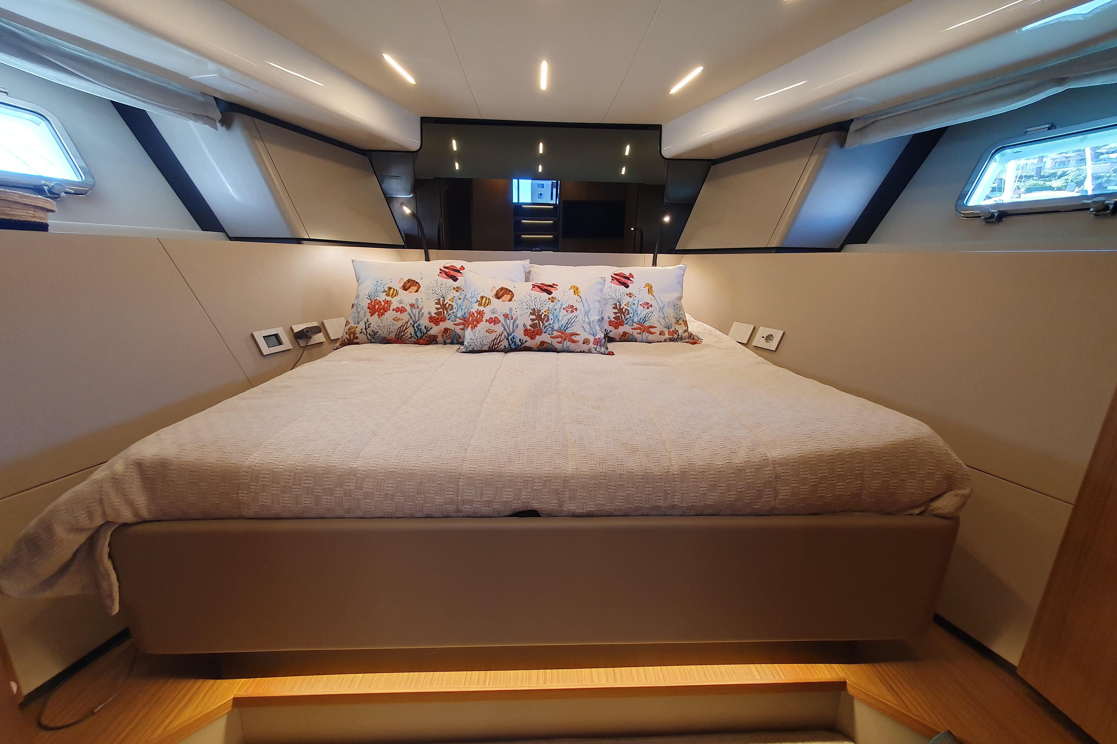 Featuring 2 ensuite cabins, a crew cabin and a spacious walkaround layout for up to 14 guests.
