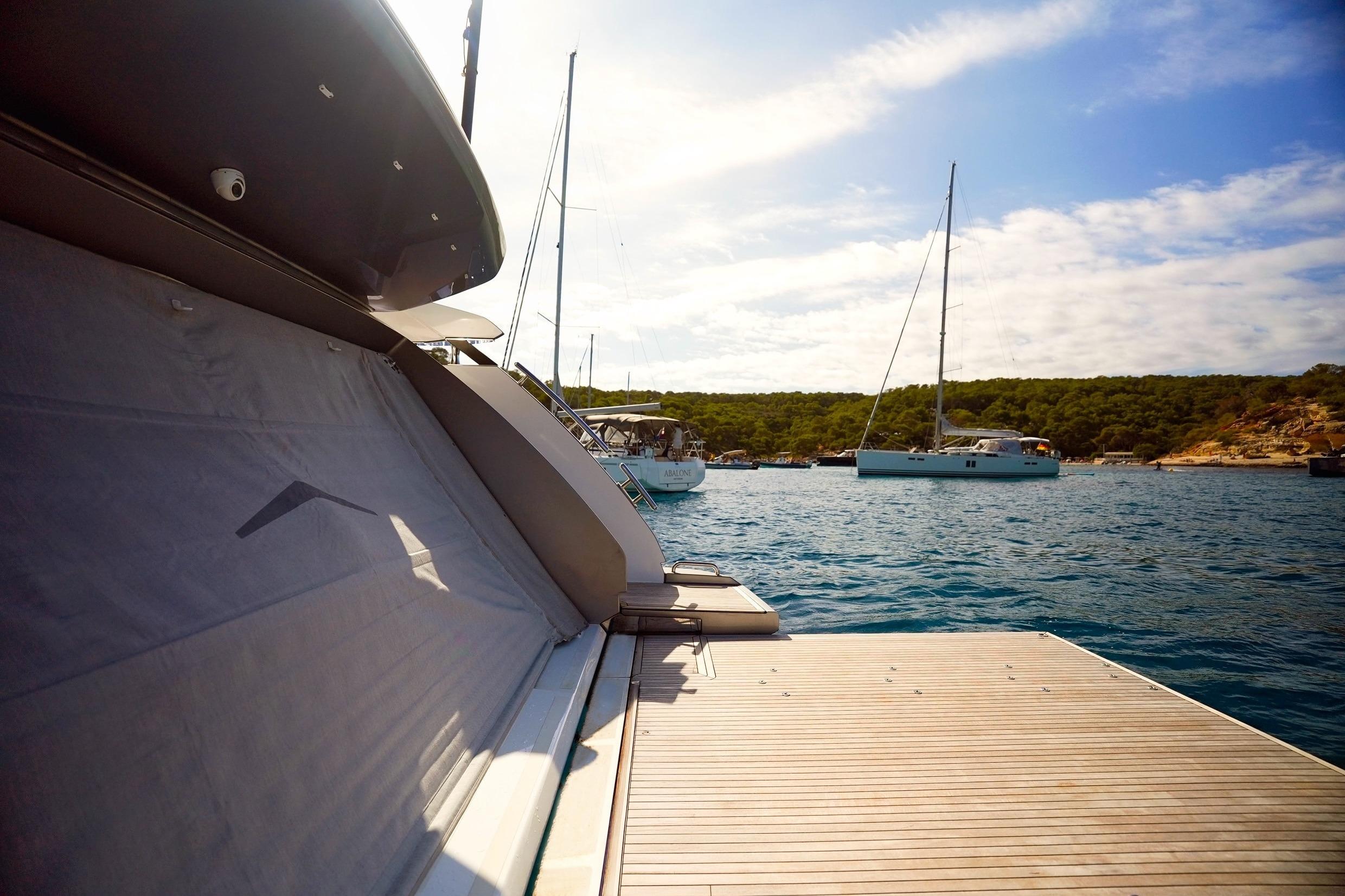 The exterior spaces of the Azimut S8 are a true highlight, designed for effortless connection to the water and endless fun. From the generous swim platform, which transforms into a secluded private beach, to the spacious aft deck with its sunbathing area, dining space, and BBQ, every detail invites relaxation and enjoyment. The bow features an oasis deck with sunbathing cushions and an awning for shaded comfort, while the impressive flybridge offers a multipurpose lounge, a fully equipped summer galley, and a helm station for an owner-operated experience.