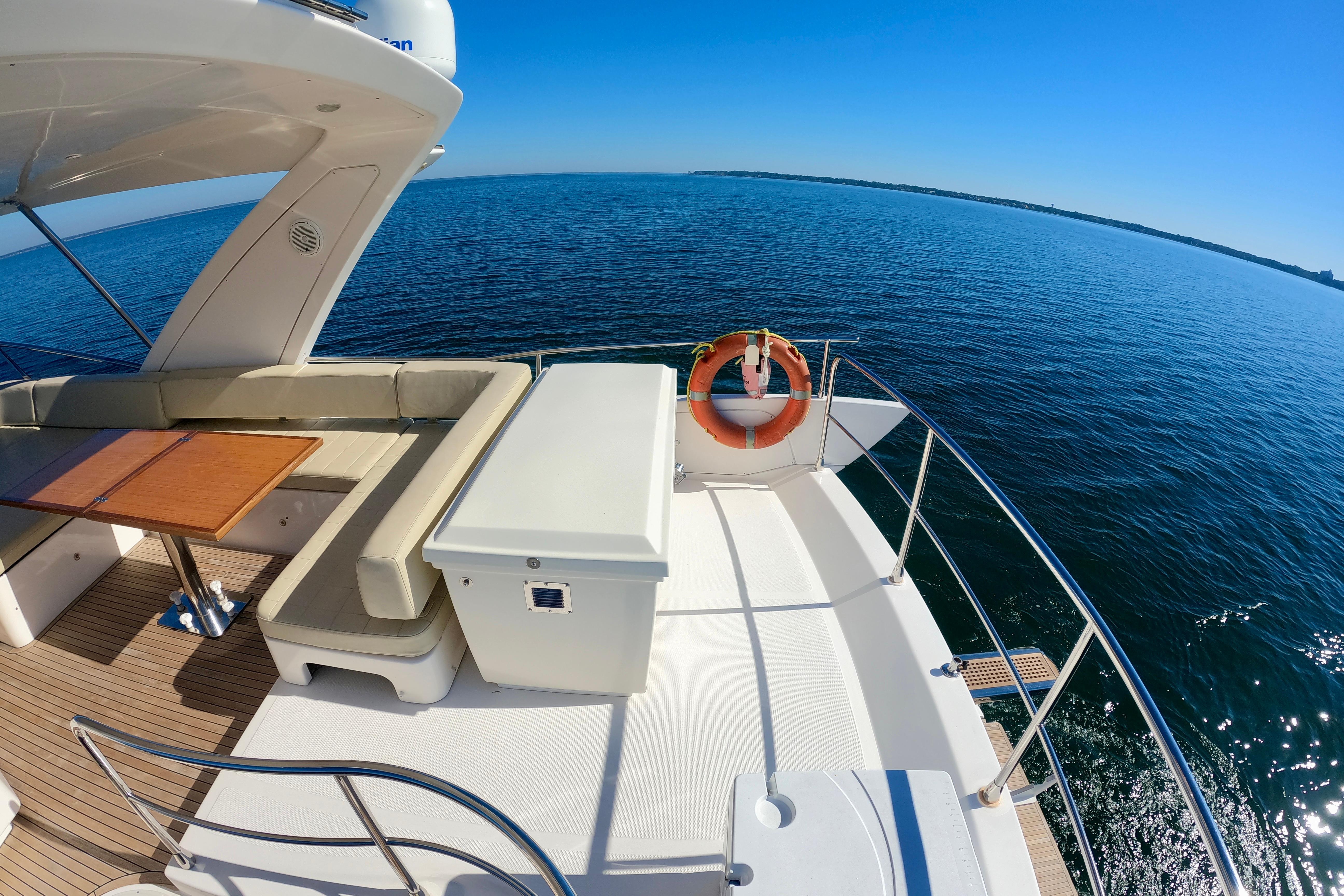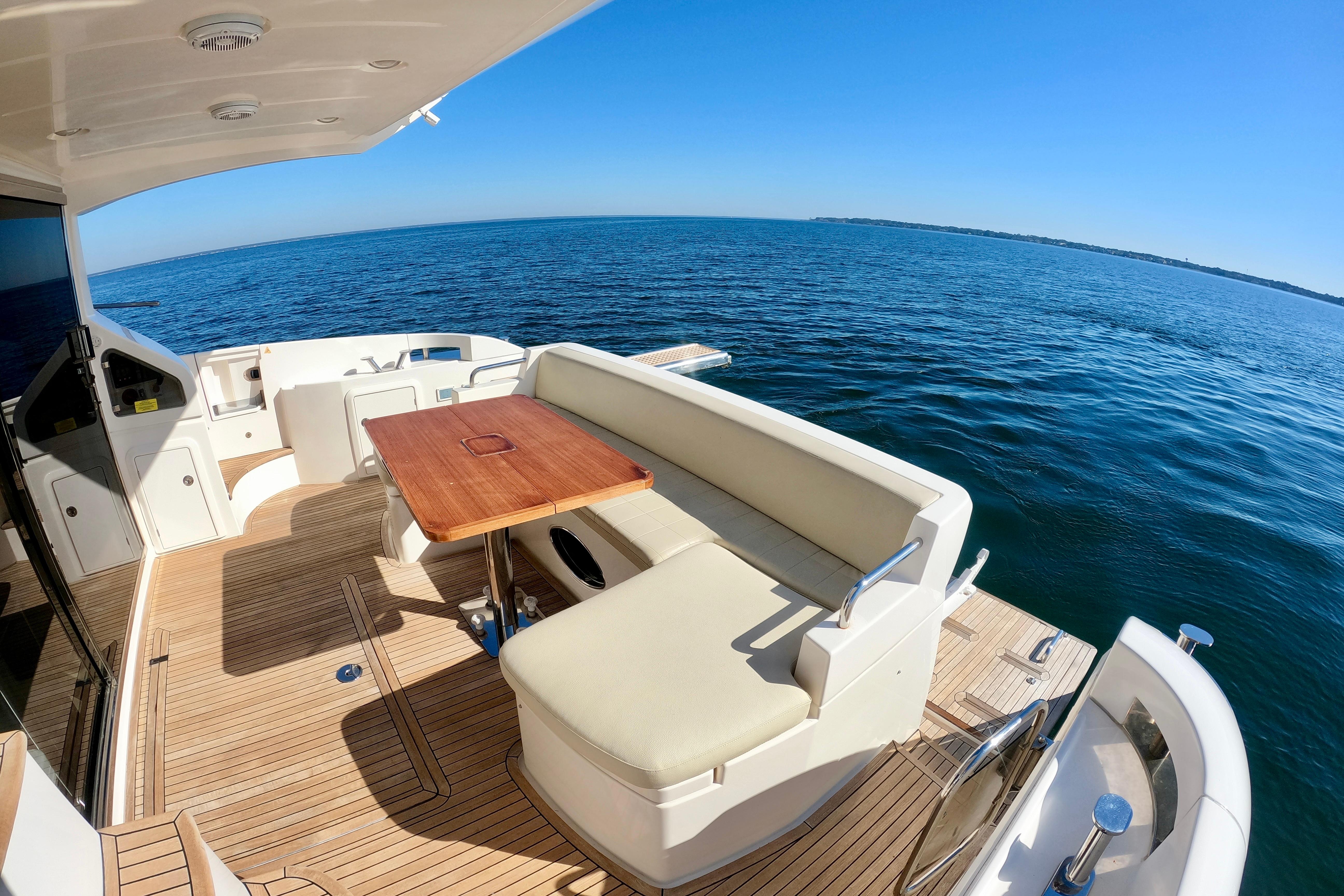 Powered by twin MAN R6 turbo-diesels, the Azimut 53 cruises comfortably at 25 knots and reaches top speeds around 34 knots. Her Modified Deep-V hull delivers a smooth, confident ride, whether you’re coastal cruising or island hopping.