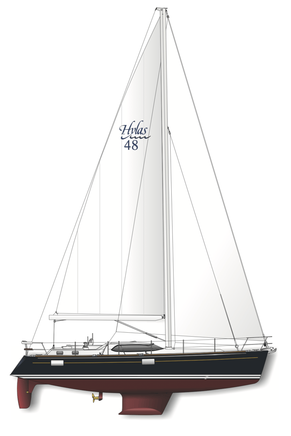 - The Hylas H48 base model comes outfitted with high-quality Dacron North Sails with the Hylas logo specifically chosen and designed for offshore and global sailing. (White)